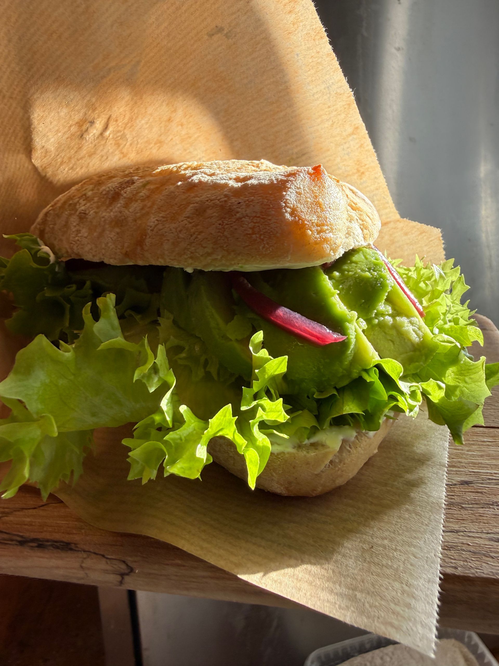 Saftige strimler af krydret kyllingekebab møder frisk, cremet tzatziki og skarpe rødløg i et luftigt ciabattastykke. En middelhavs-inspireret favorit med bid.